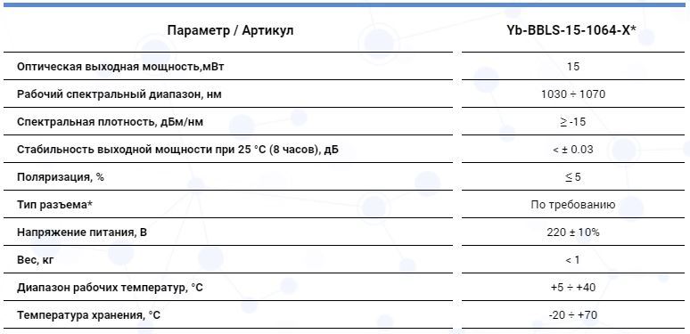 Параметр / Артикул | Yb-BBLS-15-1064-X* | ||