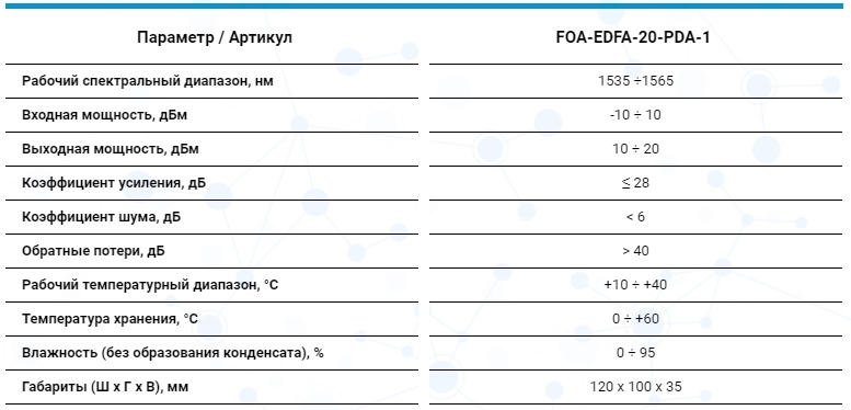 Параметр / Артикул | FOA-EDFA-20-PDA-1 | ||