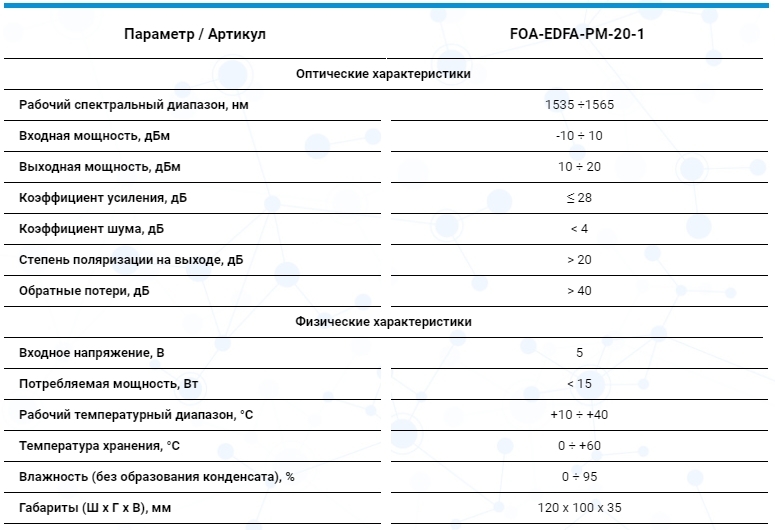 Параметр / Артикул | FOA-EDFA-PM-20-1 | ||